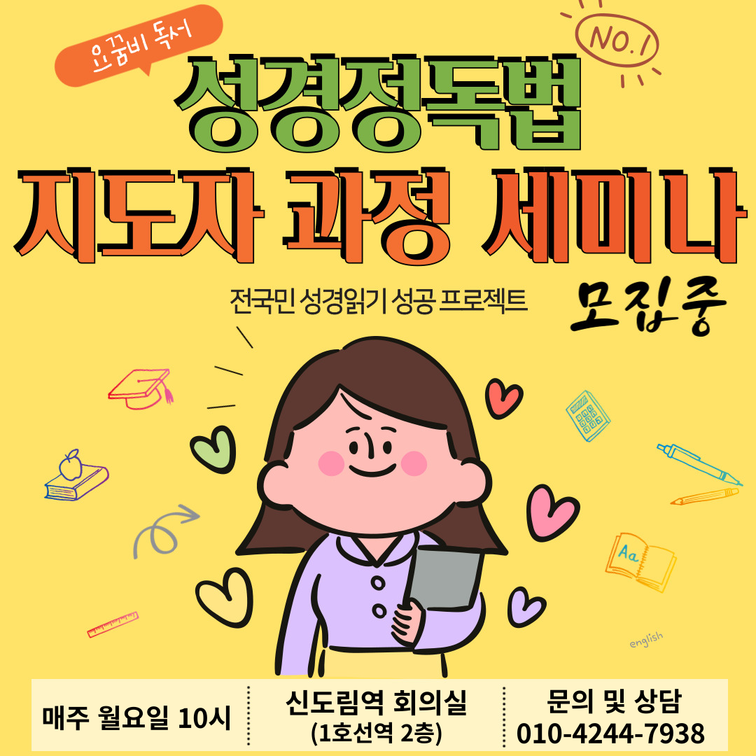 그래서 성경 정독법 지도자 과정을 모집하고 있습니다!!